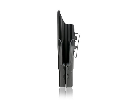 De I-Mini Guard holster is bedoeld om het wapen verborgen te dragen aan de binnenkant van de broeksband en is geschikt voor de Glock 26, 27, 33 (Gen. 1, 2, 3, 4). De holster is gemaakt van polymeer van militaire kwaliteit en heeft een metalen riemclip. De clip is geschikt voor riemen tot 5 cm breed.