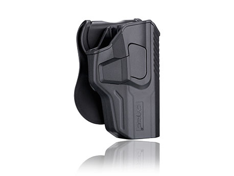 De Cytac R-Defender is een quick-release holster, gemaakt van polymeer van militaire kwaliteit, geschikt voor de Heckler & Koch USP, USP Compact, SFP9 en VP9. Nieuw bij de Gen 3 is dat de releaseknop verzonken zit en mooi strak doorloopt in het design, met een uitsparing voor de vinger. Tevens kan deze holster bevestigd worden aan de Paddle (standaard meegeleverd), Molle Attachment, Belt Loop, Belt Clip, Drop Leg Platform, Shoulder Harness en Single Shoulder Harness. De holster kan 360 graden draaien, wat gemakkelijk te doen is met de bijgeleverde inbussleutel. De R-Defender holster is perfect voor politie- en beveiligingseenheden, target shooting, airsoft en IPSC. Deze holster is geschikt voor rechtshandige gebruikers.