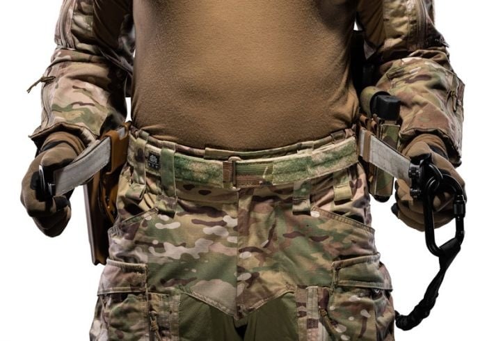 The structure of the COBRA Operator Belt 2.0 is composed by a rigid technopolymer core, wrapped in a continuous double layer of MIL-SPEC MIL-W-17337, Class 2 webbing, on which the proprietary FROG.PRO® Multi Dot MOLLE PALS system made of laser-cut LAHYCO composite fabric is sewn.