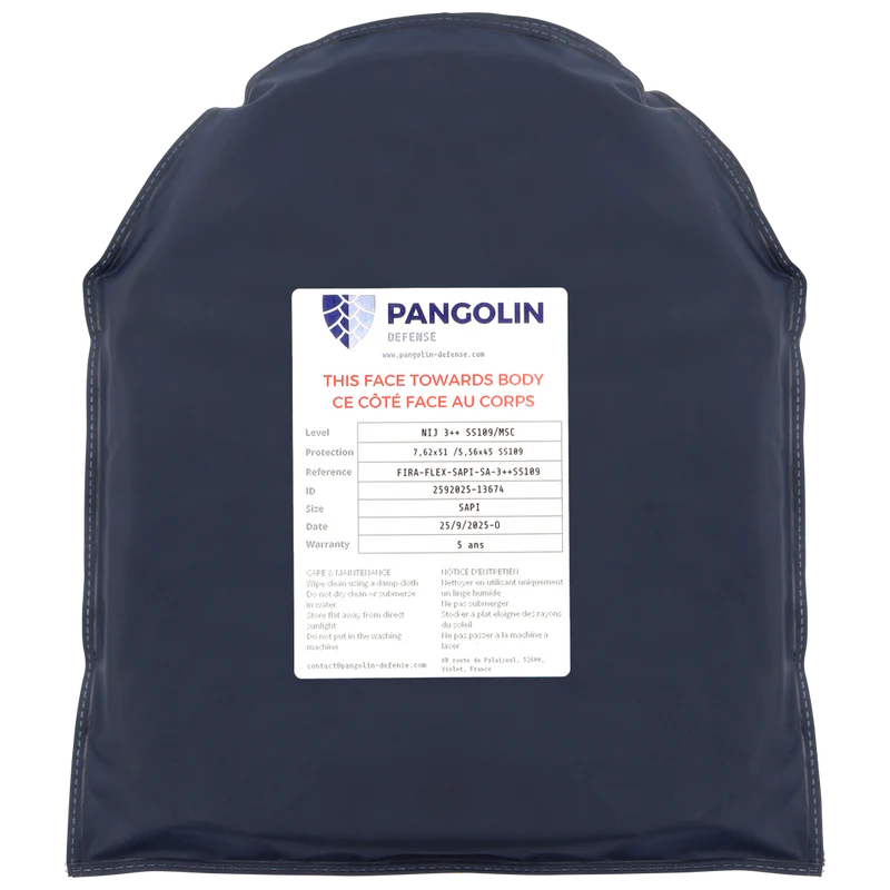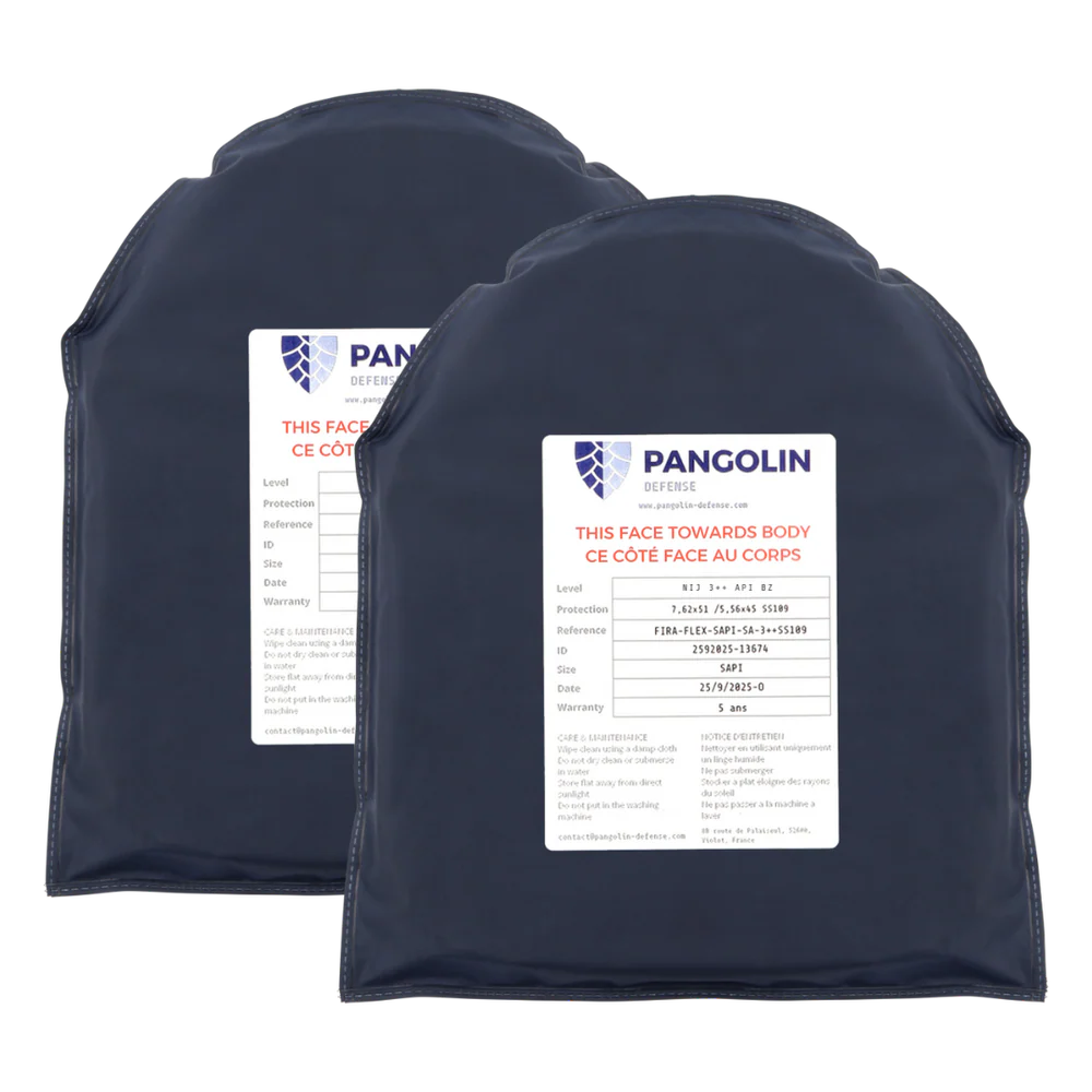 The FI/RA FLEX™ plates from Pangolin Defence, made in France, deliver exceptional rifle-level protection without compromising mobility. These flexible plates are rated to NIJ 3++ SS109 / VPAM 7, combining multi-impact resistance with a lightweight, ergonomic design.