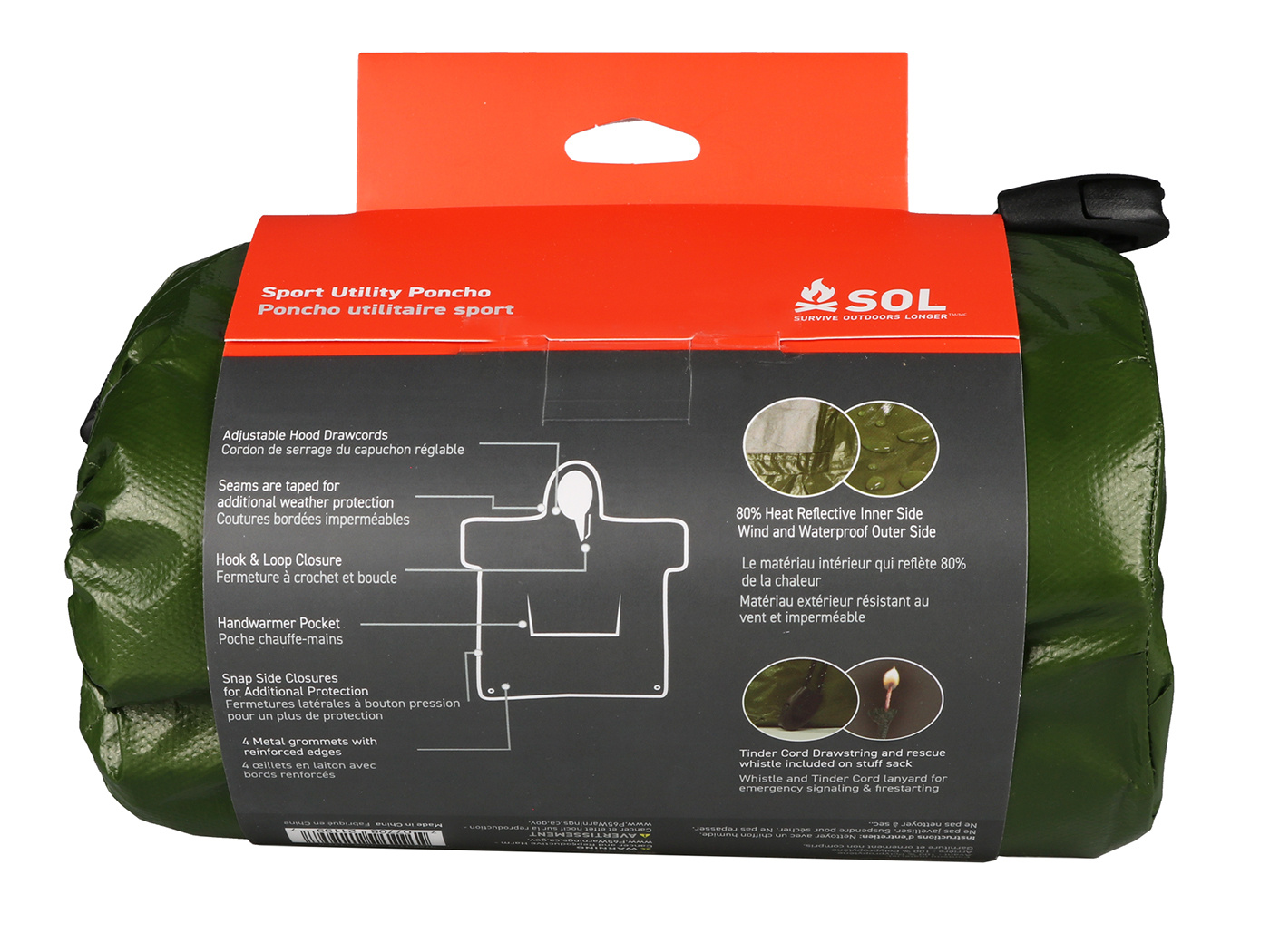 De SOL Nood Poncho is een duurzame en veelzijdige regenponcho die ideaal is om warm en droog te blijven terwijl je in beweging bent. Gemaakt van scheurbestendig materiaal, kan deze poncho meerdere noodgevallen en avonturen doorstaan. De poncho reflecteert tot 80% van de lichaamswarmte en voorkomt warmteverlies, zodat je warm blijft in koude omstandigheden. Met waterdichte en winddichte gesealde naden ben je ook beschermd tijdens zware sneeuwstormen en stortbuien. De poncho heeft een one-size-fits-all constructie en is groot genoeg om zowel jou als je bepakking tegen regen te beschermen. Dankzij het compacte en lichtgewicht ontwerp past de poncho gemakkelijk in verschillende opbergmogelijkheden, zoals rugzakken en handschoenenkastjes. Bovendien kunnen de versterkte zeilringen van de poncho worden gebruikt om een schuilplaats te creëren. De poncho wordt geleverd in een stuffzak met een reddingsfluitje en een trekkoord voor noodgevallen. Kortom, de SOL Nood Poncho biedt warmte en bescherming tijdens slecht weer, terwijl je in beweging kunt blijven.